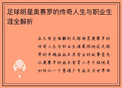 足球传奇佩莱以其卓越的技术和无与伦比的球场表现,成为了全球足坛的一位标志性人物。他在职业生涯中为多支球队效力,并在国家队中也有着不俗的表现。文章将从佩莱的职业生涯、个人成就、影响力以及对足球发展的贡献四个方面进行解析,全面展示这位足球巨星的辉煌历程。通过对他的生涯回顾,我们可以更深入地理解他如何在绿茵场上书写传奇,同时也能感受到他对后辈球员及整个足球界的重要影响。佩莱不仅是一名优秀的运动员,更是一...