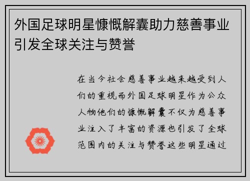 近年来,中国在国际足球舞台上的影响力不断上升,尤其是邀请国际足球明星参与盛大赛事的举动,引发了广泛热议与期待。本文将从四个方面深入探讨这一现象:首先,从赛事组织角度分析中国如何搭建高水平的比赛平台;其次,讨论国际明星加盟对国内球迷和市场的影响;第三,考察这种邀请对中国足球整体发展的促进作用;最后,展望未来中国在全球足球版图中的角色及其潜力。通过这些分析,我们可以更全面地理解中国在推动国际足球交流与...