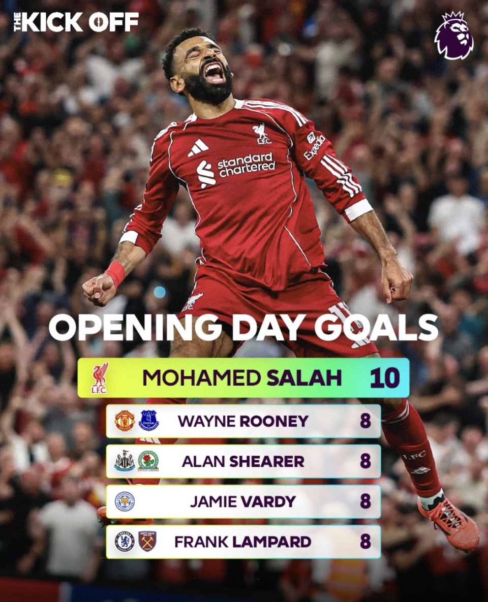 英超2025/26赛季于8月15日在安菲尔德揭幕,卫冕冠军利物浦以4-2击退伯恩茅斯:埃基蒂克首开纪录并助攻加克波破门,伯恩茅斯一度由塞梅诺梅开二度扳平,最后阶段基耶萨与萨拉赫连入两球锁定胜局。